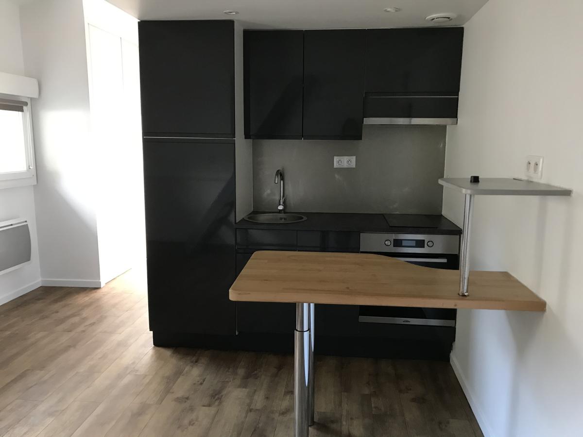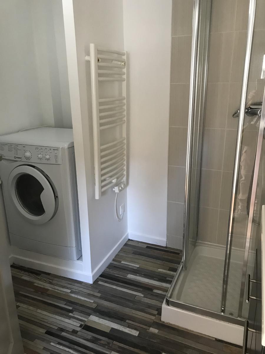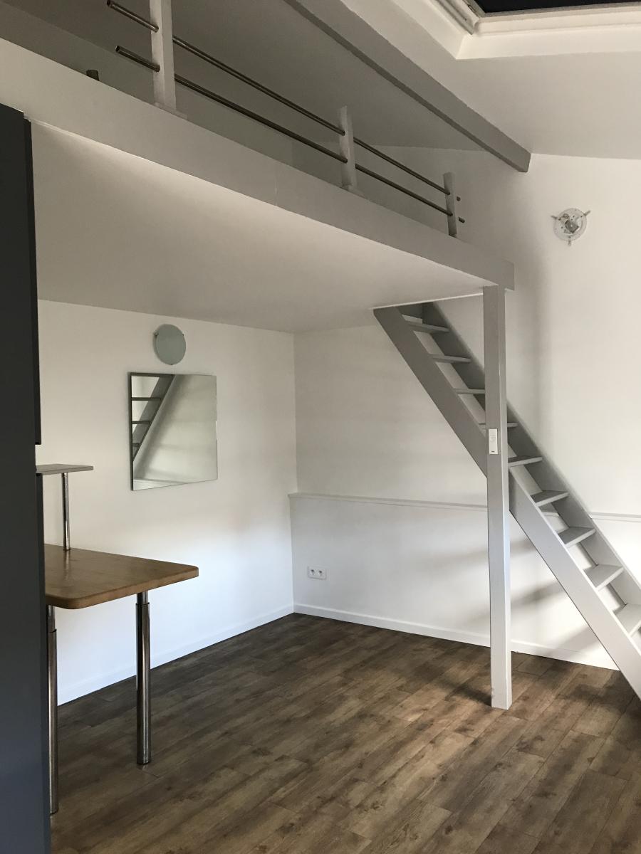 Appart F1 coin cuisine meublé et aménagé (four, pl. électrique, réfrigérateur) Mezzanine offrant un espace nuit uniquement. Salle d’eau avec WC et machine à laver le linge.