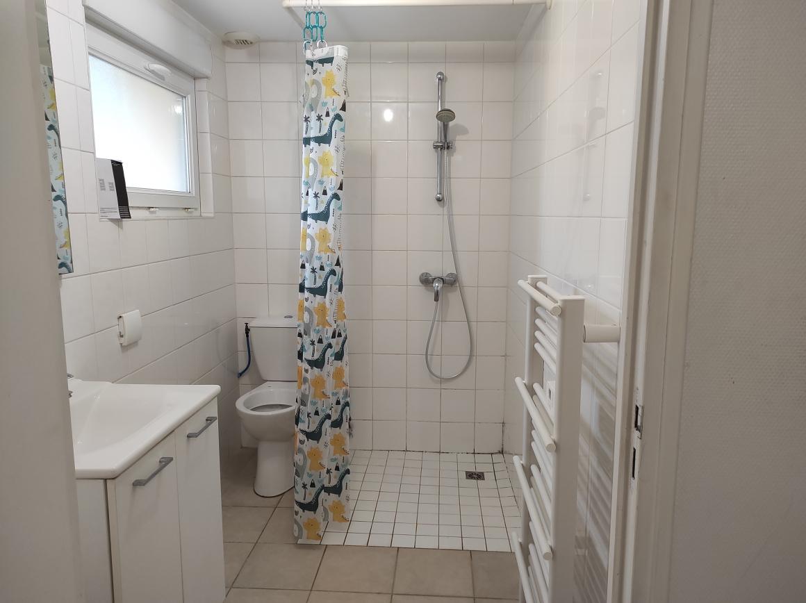 Appartement F1 rdc de 34.99m² dans petite copropriété comprenant une pièce principale avec coin cuisine (pl. électrique et réfrigérateur). une salle d'eau. cave, parking jardin