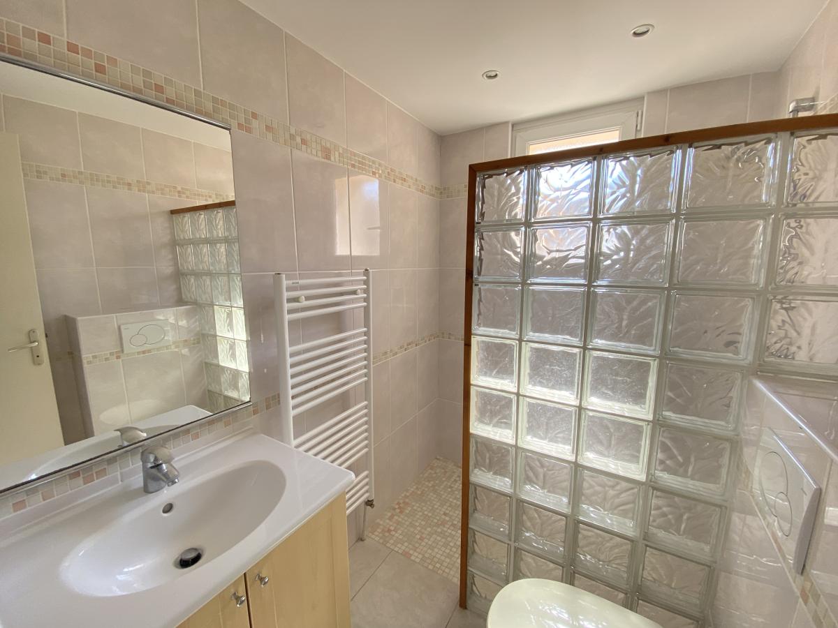 Au premier étage : un couloir distribue trois chambres avec parquet et deux salles d'eau avec WC.