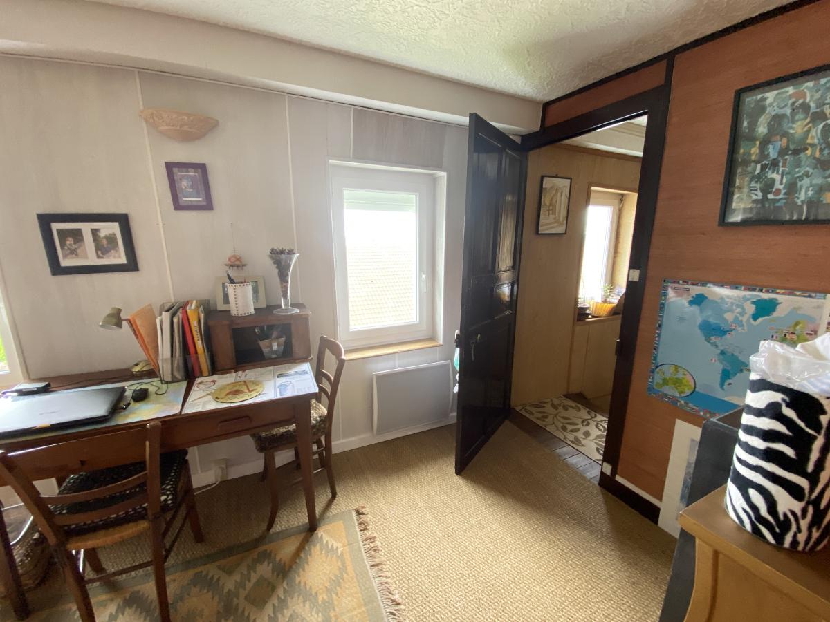 Au premier étage : palier, bureau, deux chambres lumineuses et une grande salle de bains avec WC.