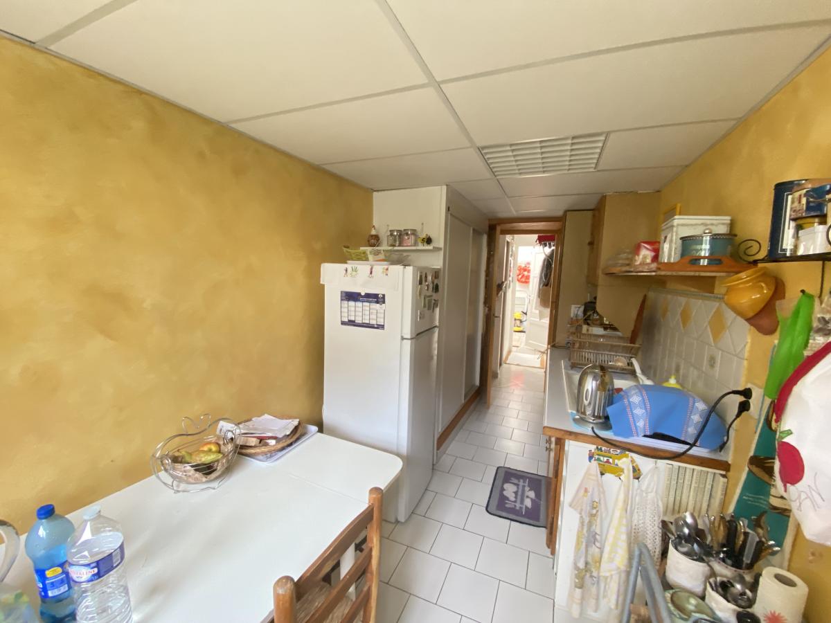 Maison ancienne en excellent état avec du caractère et un beau volume, elle comprend une entrée, un séjour salon avec cheminée insert, dégagement, une cuisine, WC et buanderie.